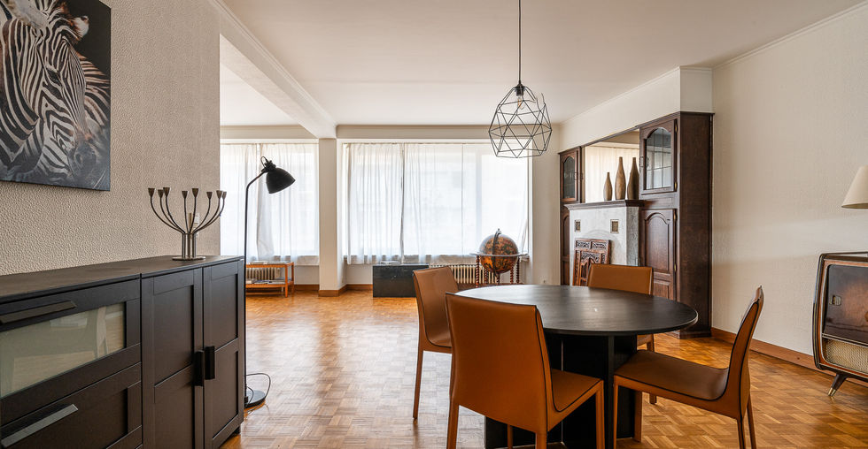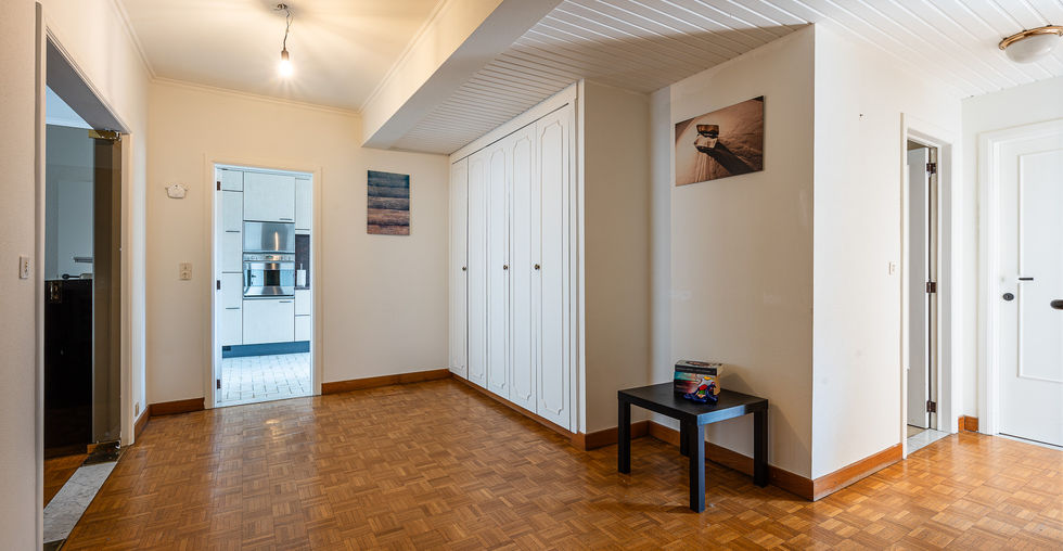 Dit op te frissen appartement is zeer ruim en beschikt over een inkomhal met toilet, praktische keuken met berging, zeer grote leefruimte met veel lichtinval. De nachthal geeft uit op 2 slaapkamers, badkamer en polyvalente kamer. De twee achterste slaapkamers hebben toegang tot het grote terras. Het appartement is duurzaam gezet met een mooi visgraten parket en volle deuren.